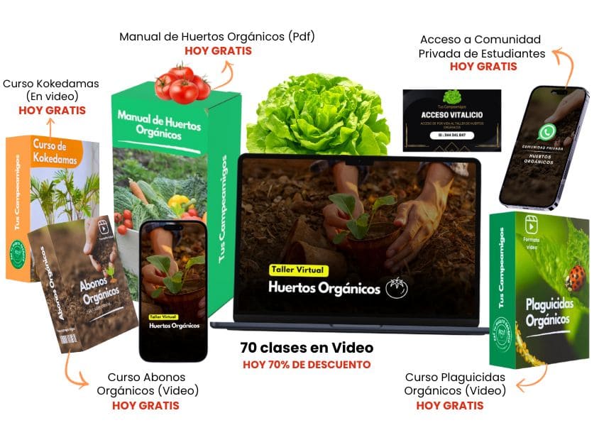70 clases en video 100% prácticas que te enseñaran paso a paso como hacer un huerto orgánico en casa y cultivar tus propios verduras y hortalizas libres de químicos.
